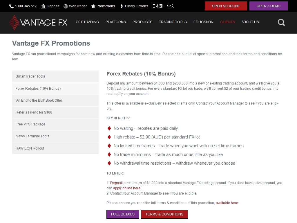 Бонусы Vantage FX