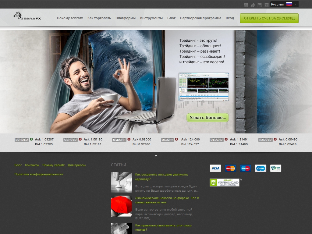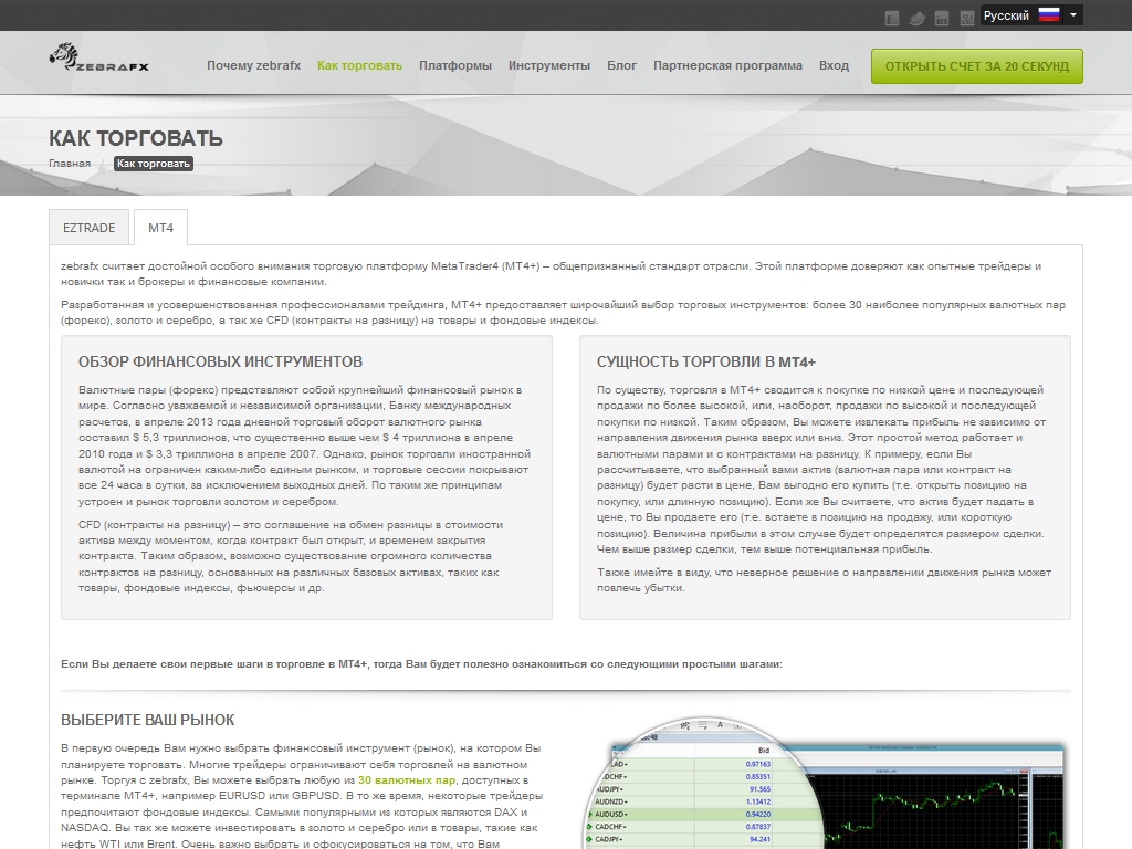 Компания Zebrafx предоставляет возможность начинающим трейдерам научиться торговать на валютном рынке Forex и бинарными опционами бесплатно, воспользовавшись материалами, опубликованными на ее сайте.