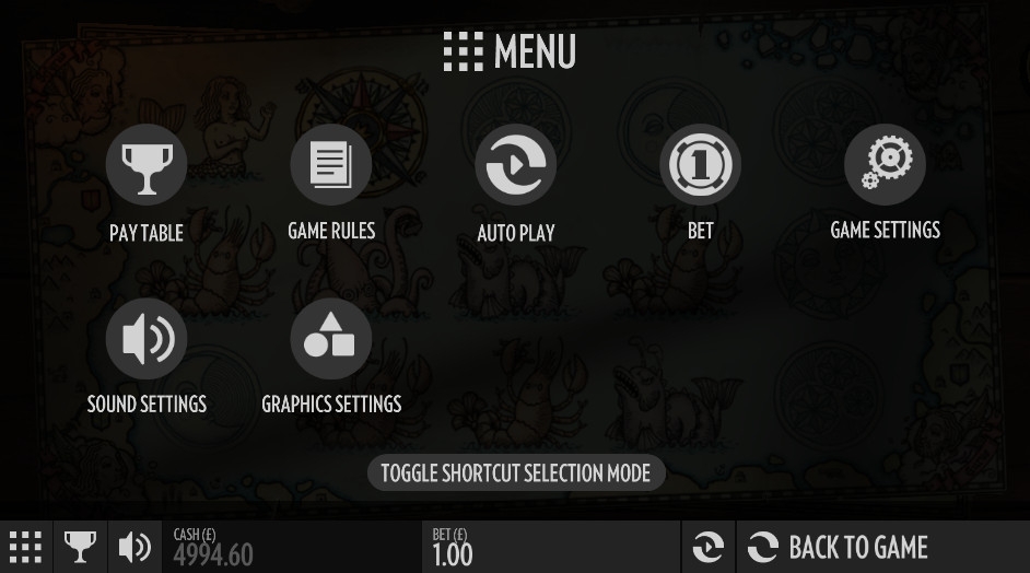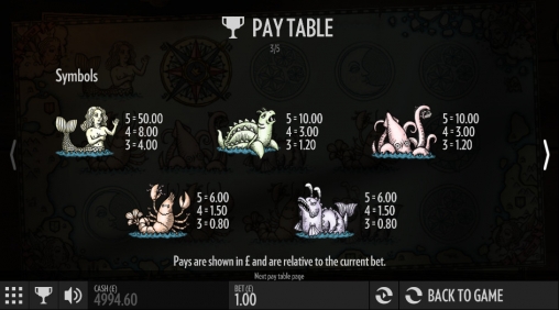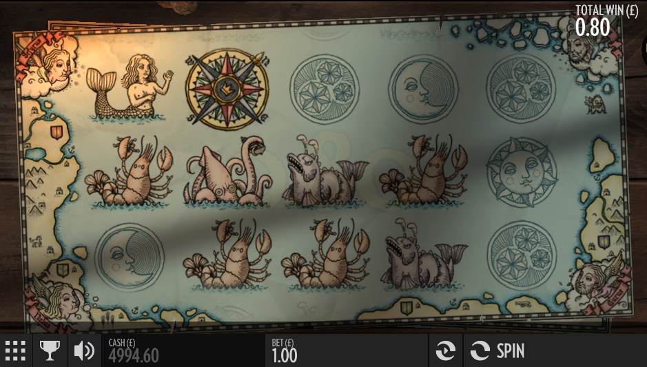 Экран игрового автомата оформлен в стиле средневековых морских карт, на которых изображали не только очертания морей и суши, но также рисовали китов, кальмаров, осьминогов и даже русалок. Такие же картинки можно увидеть на барабанах этой игры.