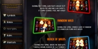 В таблице выплат есть несколько вкладок с коэффициентами, правилами, особенностями фри-спинов, нюансами бонусной игры и другой информацией.