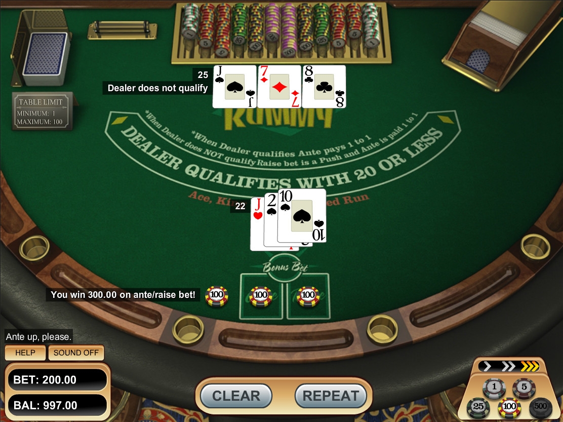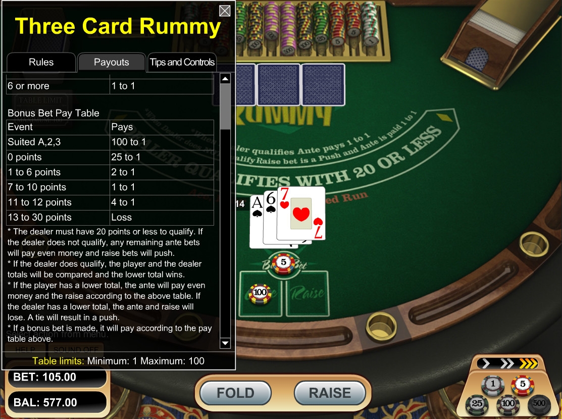 В 3 Card Rummy не разыгрывается накопительный джекпот.