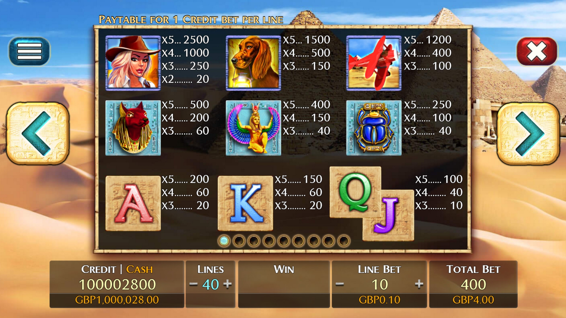 Помимо главной героини слота, прекрасной блондинки в широкополой шляпе, вы увидите на экране рыжего пса, красный аэроплан, египетские статуэтки, а также фрески с разноцветными буквами, которые обозначают номиналы игральных карт.