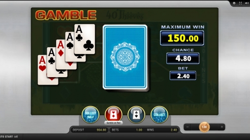 В 40 Thieves доступны простые символы, картинки с расширенными опциями, две разновидности игры на удвоение выплаты и фри-спины.
