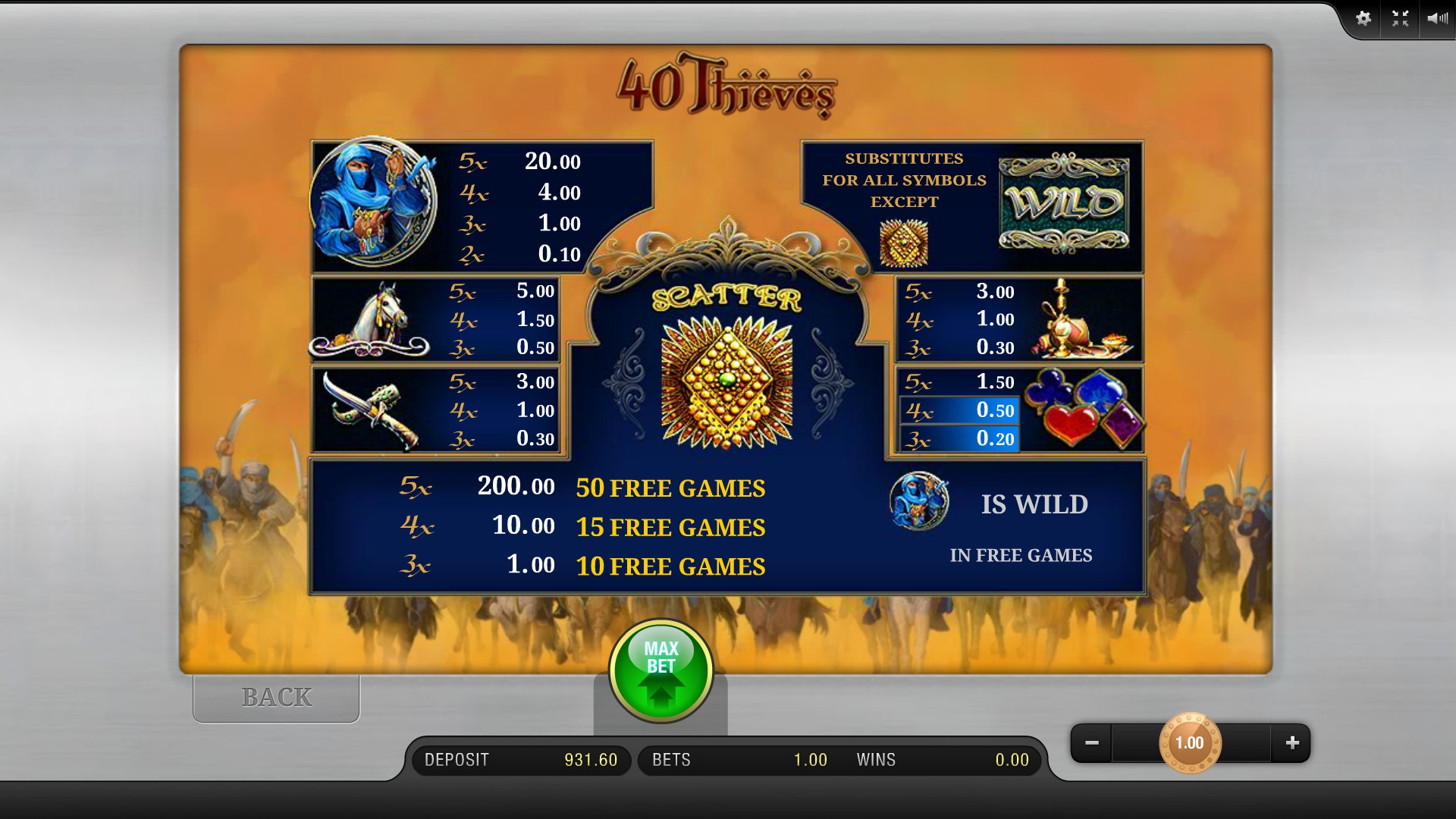 В 40 Thieves не предусмотрен розыгрыш накопительного джекпота в какой-либо форме.