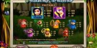 Goodland Casino («Казино “Гудленд”») – игрок получает право на пять бесплатных спинов по текущей ставке. В данных запусках все символы оплачиваются по принципу Scatter (в любой позиции на экране). Если появится Белоснежка, она заморозит счетчик бесплатных спинов до тех пор, пока будет находиться рядом с барабанами. В конце данного раунда нужно будет выбрать одного из гномов, чтобы узнать, какого размера будет дополнительный коэффициент, на который умножатся выплаты.