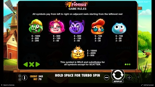 Испытать 7 Piggies бесплатно можно на нашем портале. Видео-обзор продемонстрирует фри-спины и другие опции геймплея.