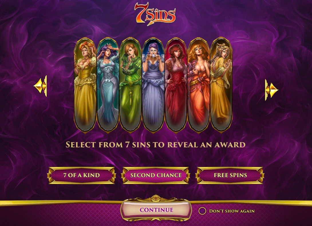 На барабанах игрового автомата 7 Sins появляются шесть прекрасных девушек, олицетворяющих семь основных пороков. Также на экране можно увидеть четыре карточных масти.