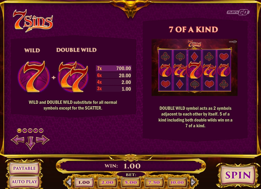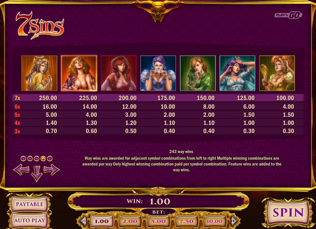 Прогрессивный джекпот Play’n Go в 7 Sins не предусмотрен.