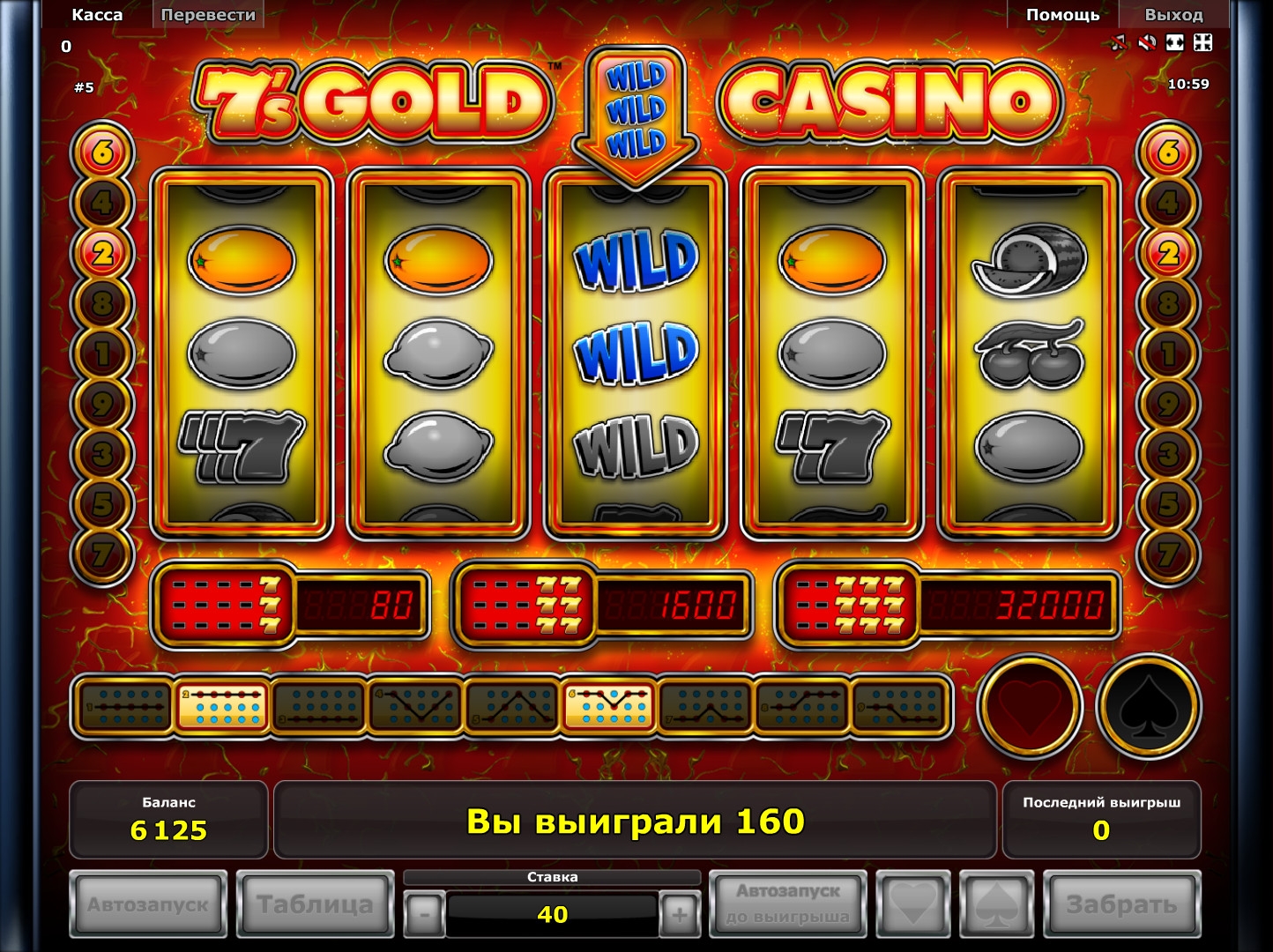 Мы тестировали 7’s Gold Casino в бесплатной версии на портале StarGames, но вы сможете найти новинку в других заведениях на лицензионном софте Novomatic.
