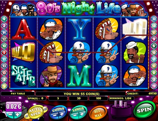 На экране видео-слота 80’s Night Life появляются представители различных профессий и национальностей, а также буквы Y, M, C и A.