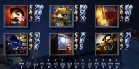 На экране игрового автомата можно увидеть картинки с изображением детектива, котенка, камеры внешнего наблюдения, сумки с драгоценностями, чемодана с ювелирными украшениями и прочее.