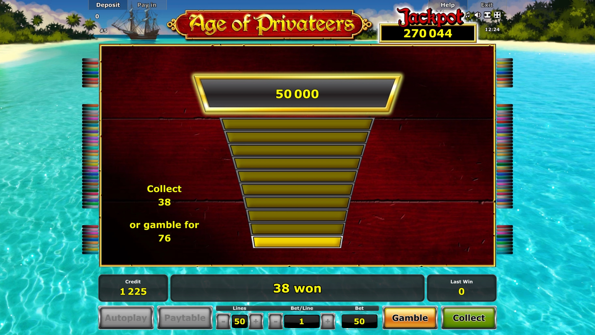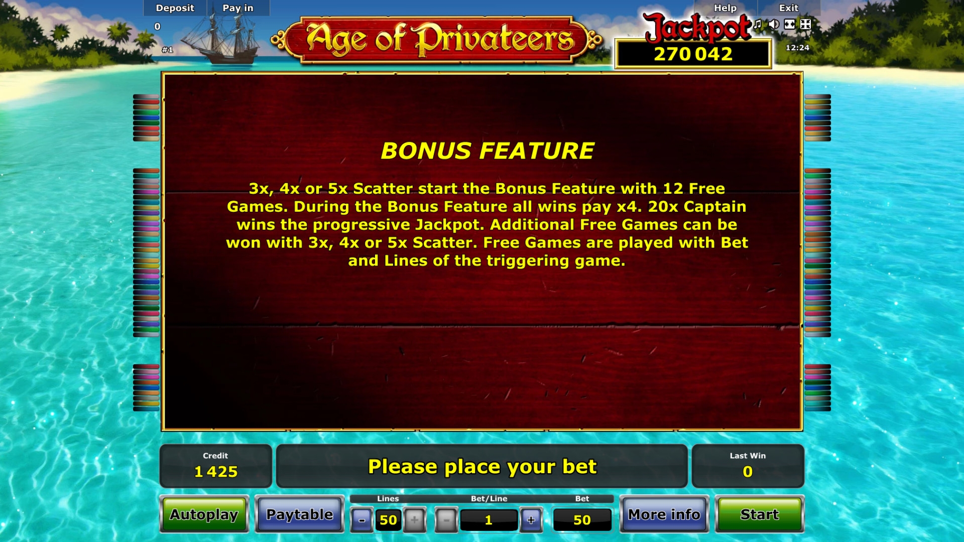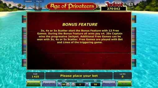Играя в Age of Privateers на деньги, пользователь автоматически претендует на прогрессивный джекпот. Размер ставки может быть любым, но полная сумма достается клиенту, который играет по максимуму. Чтобы получить накопительный джекпот, заполните двадцать ячеек на экране джокерами.