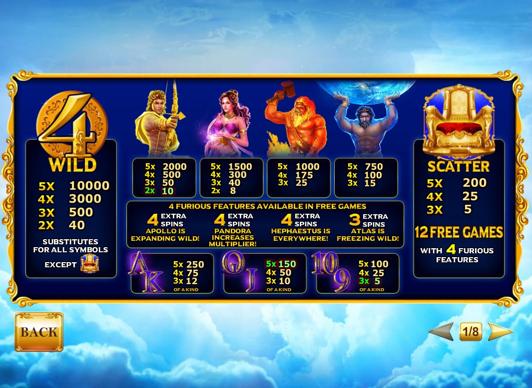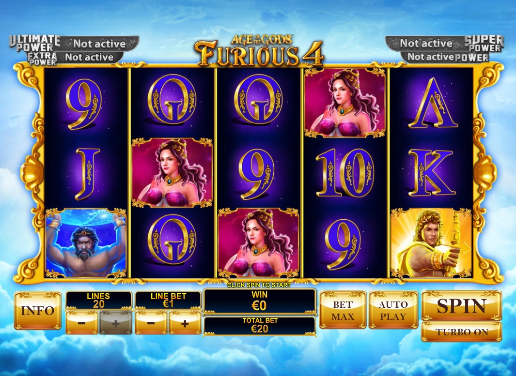 Вы сможете играть в Age of the Gods: Furious 4 бесплатно и на деньги в Europa casino и некоторых других интернет-казино с программным обеспечением Playtech. Выбрать заведение вам помогут наши обзоры и мнения читателей.