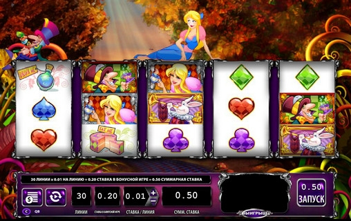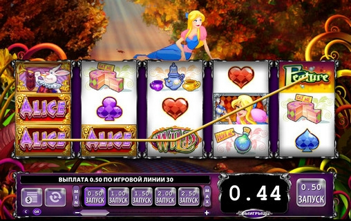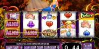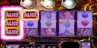 Основной экран игры, на котором вращаются барабаны, непривычно узкий. Над ним то появляется, то исчезает Алиса. Периодически ей составляют компанию другие персонажи сказки Льюиса Кэрролла, что вносит оживление в игровой процесс.