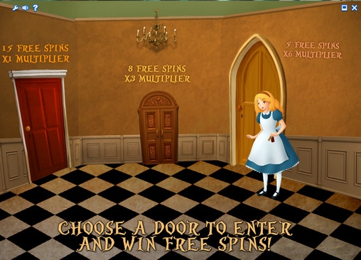 В бонусной игре видео-слота Alice in Wonderland сначала нужно дать Алисе выпить зелье из бутылочки. После этого перед ней окажется три двери. Над каждой из них будет написано количество бесплатных спинов, полагающихся вам, и размер дополнительного множителя, который будет действовать во время данных вращений. Когда вы сделаете выбор, начнутся запуски.
