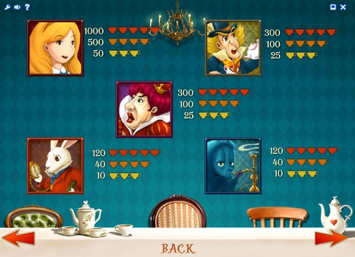 В видео-слоте Alice in Wonderland действуют особые символы, бонусные раунды, дополнительные множители и другие опции. Рискованная игра по шансам отсутствует.