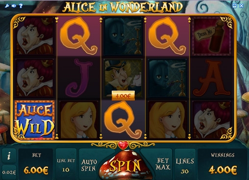 Alice in Wonderland – видео-слот с пятью барабанами, тремя рядами символов на экране и тридцатью линиями. Играть на игровом автомате можно по 1, 5, 10, 15, 20, 25 или 30 активным линиям. На каждую из них принимается ставка в одну – десять монет номиналом в один или два цента. Следовательно, на спин можно поставить до шести евро.