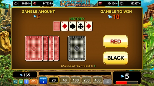 Система розыгрыша не отличается от той, что реализована в других азартных играх компании. На дополнительном экране появляются закрытые карты. Их нужно выбирать в произвольном порядке. Когда вы соберете три карты одной масти, вам достанется прогрессивный джекпот данного типа.