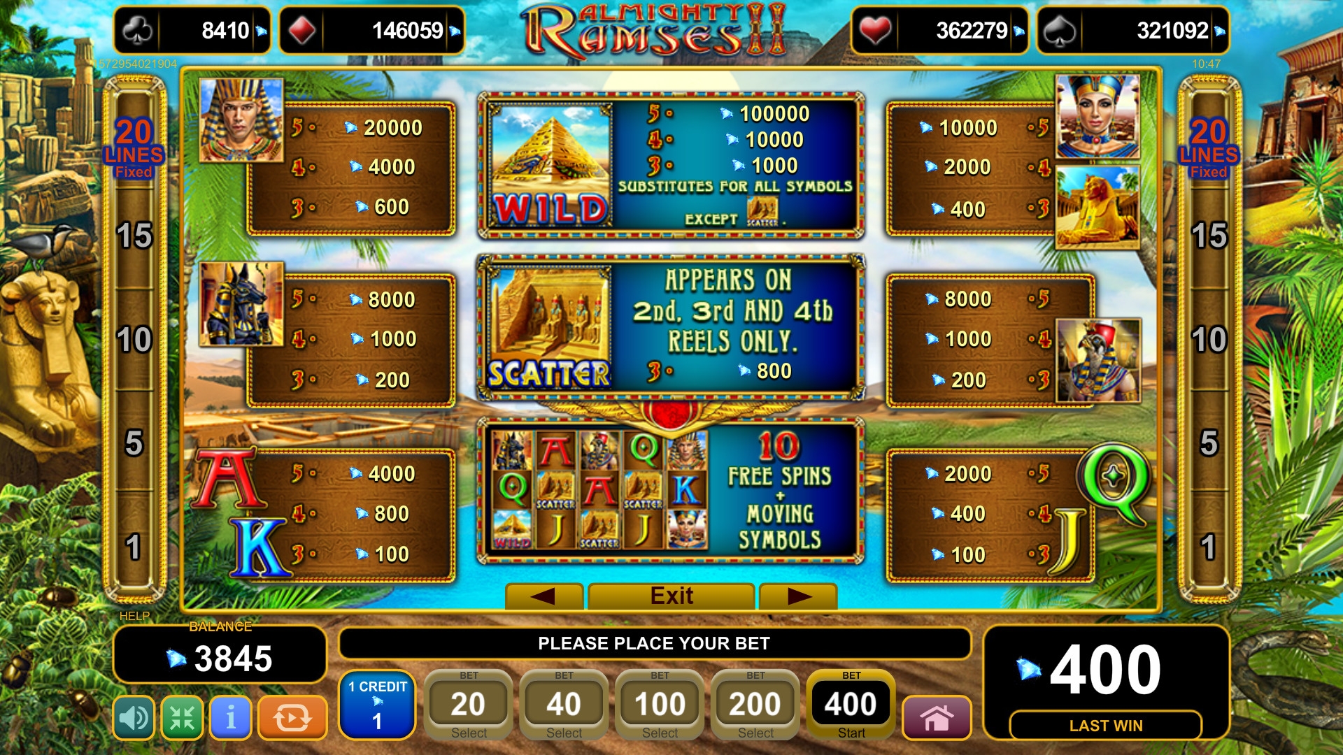 Читатели Casinoz могут испытать Almighty Ramses II бесплатно на нашем сайте. Видео-обзор модели продемонстрирует основные возможности геймплея.
