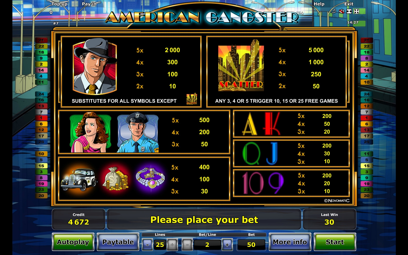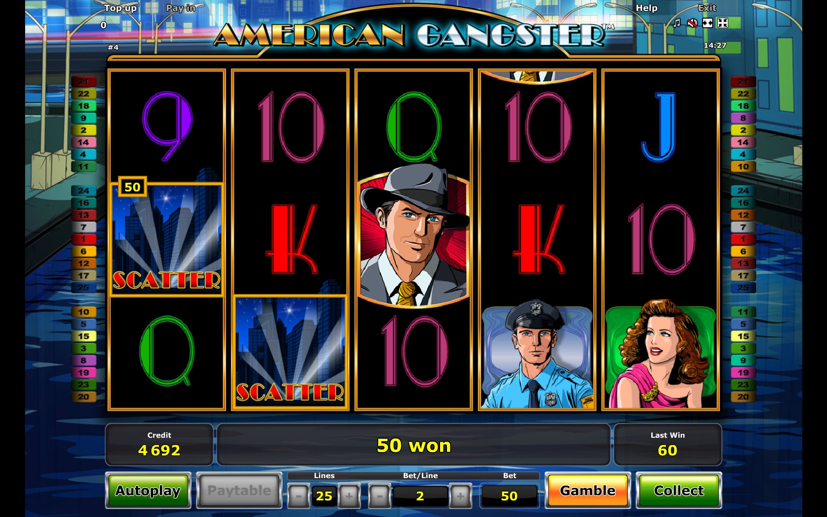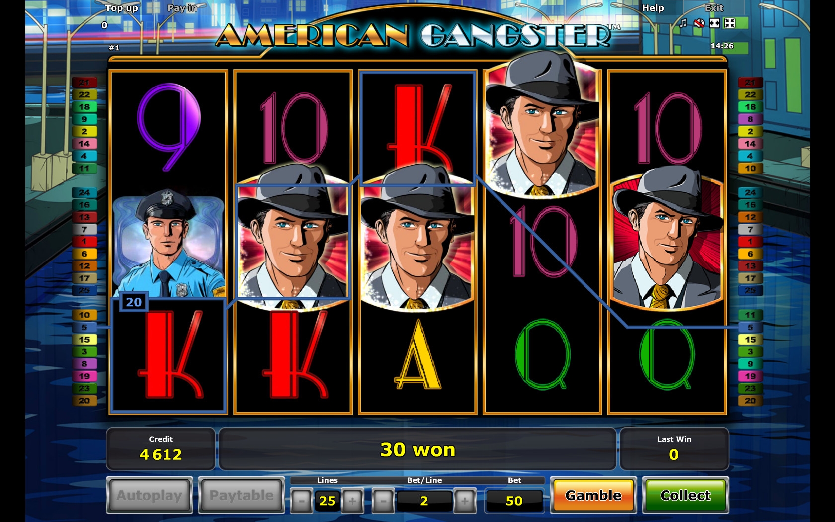 American Gangster – это модель с пятью барабанами, пятнадцатью картинками на экране и двадцатью пятью линиями.
