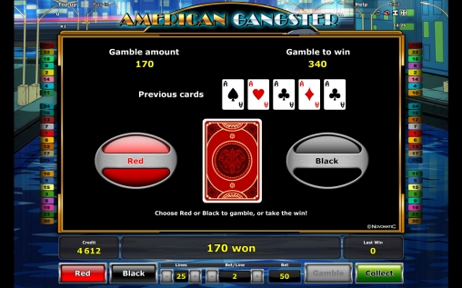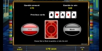 По завершению раунда пользователь решает, стоит ему забрать деньги или поставить их на кон в игре по шансам. Если он захочет рискнуть, ему предстоит угадывать цвет закрытой карты. При удачном стечении обстоятельств сумма удваивается. При ошибке он лишается ставки.