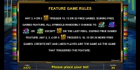 В видео-слоте реализованы простые и особые символы, призовые вращения с увеличенными выплатами, риск-игра по шансам и другие функции.