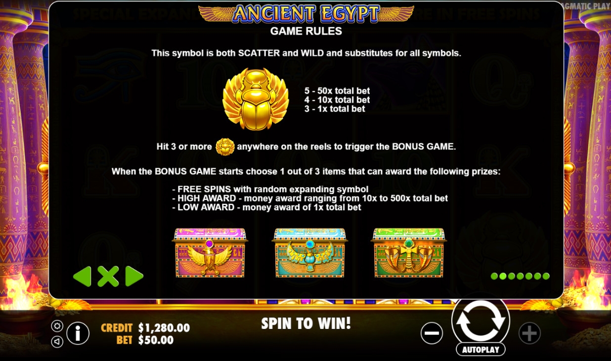 В Ancient Egypt накопительные джекпоты Pragmatic Play не разыгрываются.