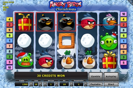 Если вы – фанат компьютерной игры Angry Birds, вам обязательно понравится видео-слот Angry Birds – Christmas. Он классно передает атмосферу популярной головоломки и дает возможность «погоняться» за многочисленными комбинациями и крупными выплатами. Разработчиков модели также можно похвалить за красочную графику, комфортный интерфейс, интересные функции и другие плюсы Angry Birds – Christmas.