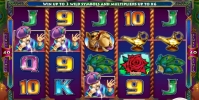 Запустив игровой автомат онлайн, вы увидите на его экране арабского мужчину в национальной одежде, верблюда, лампу Аладдина, хвост павлина, а также разноцветные обозначения номиналов игральных карт.