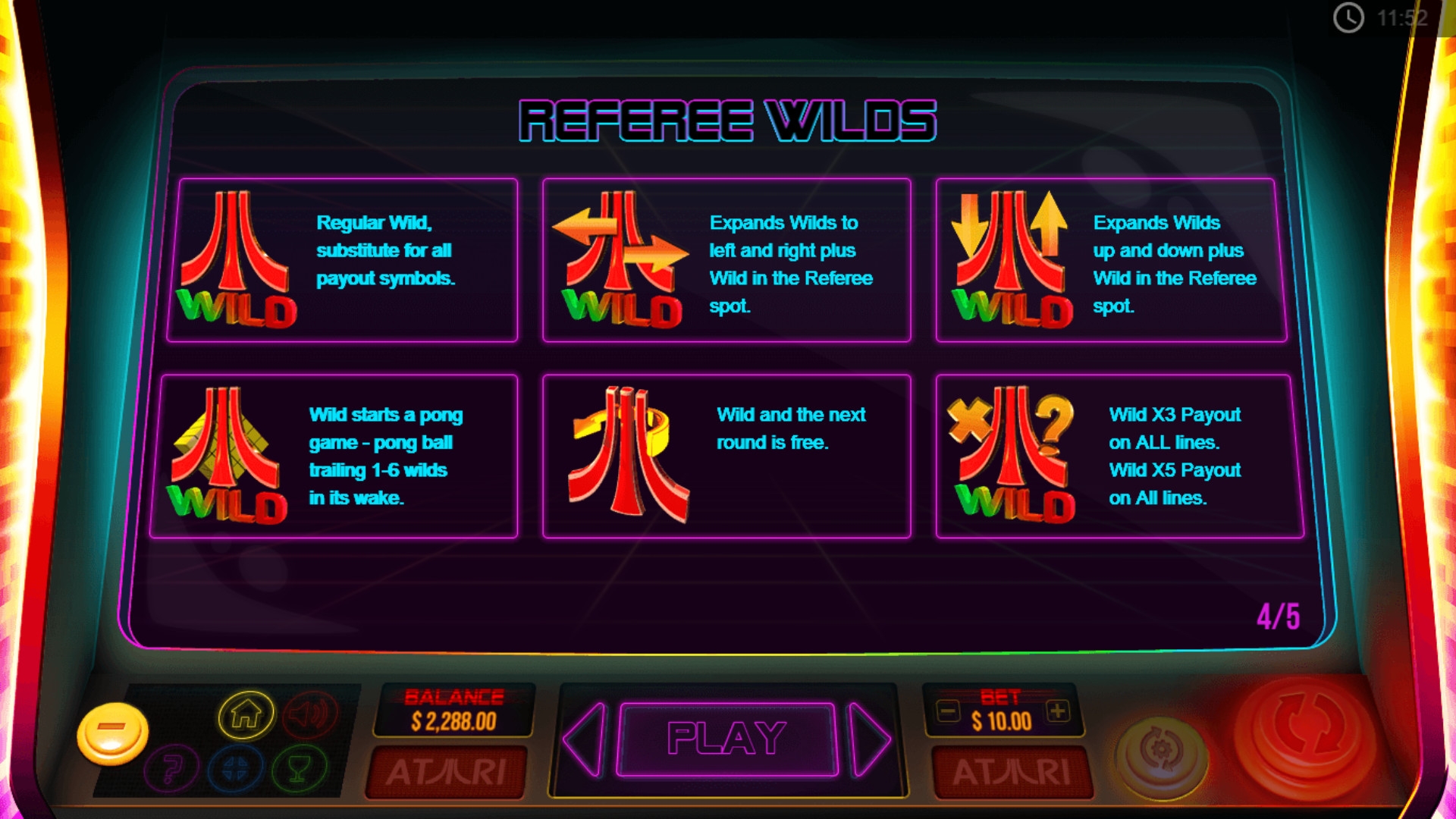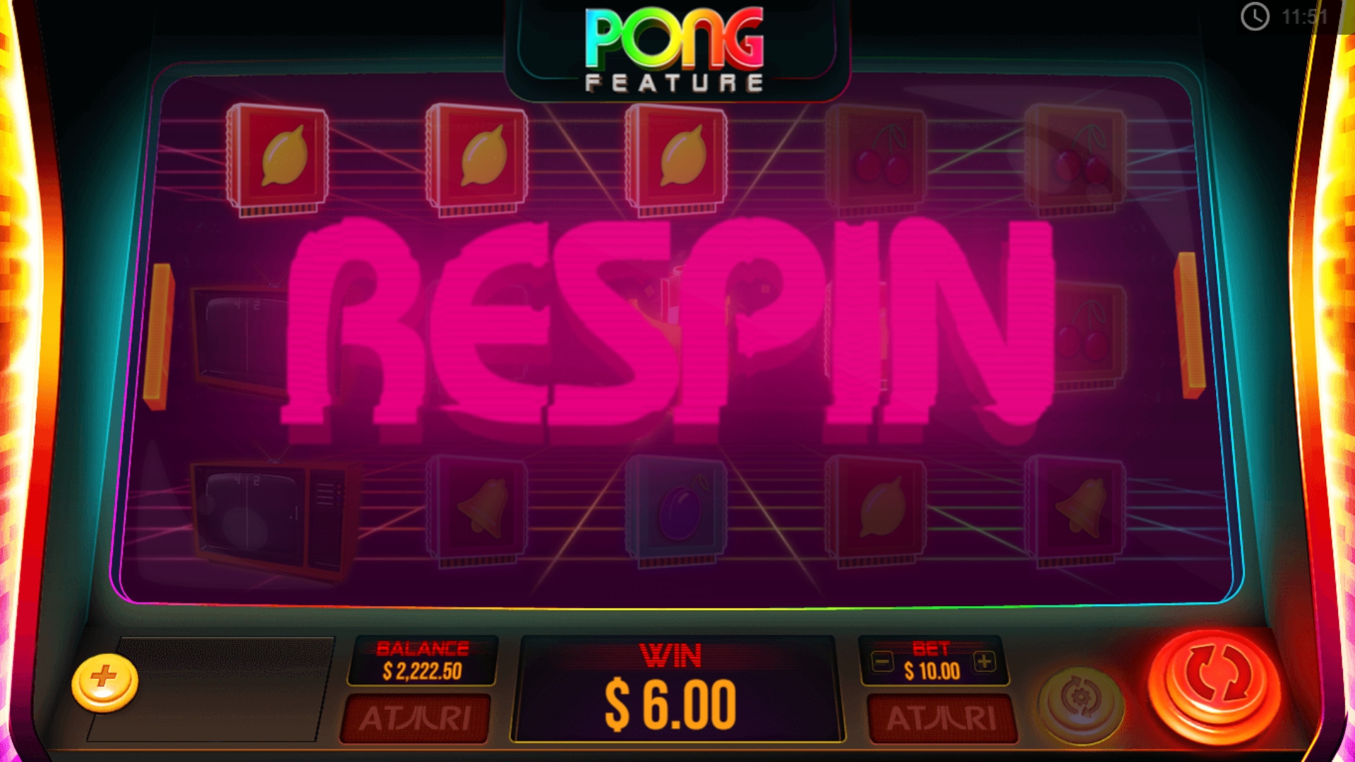 Помимо базовых картинок, в Atari Pong задействованы джокеры, способные запускать несколько бонусных розыгрышей.
