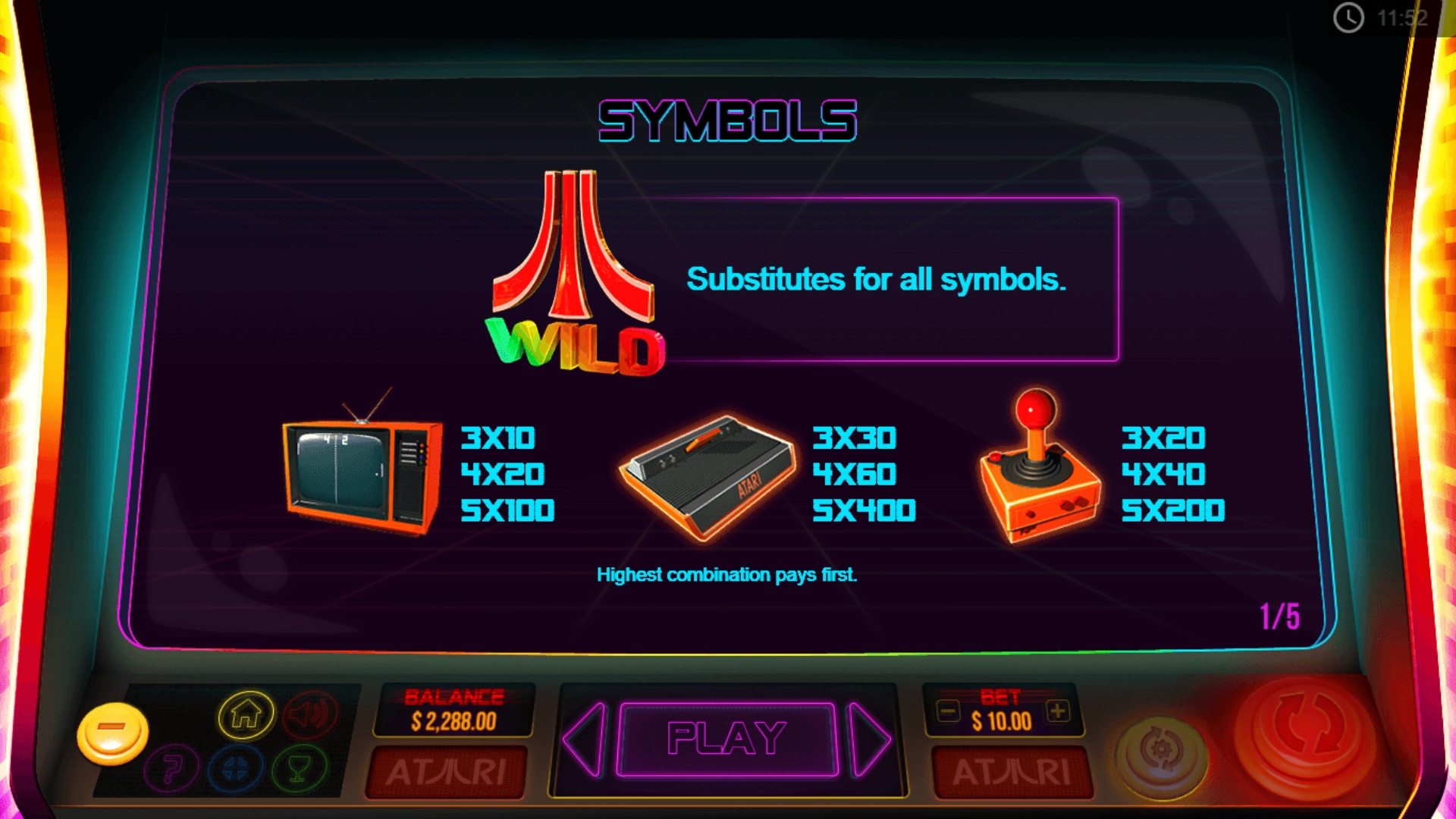 Сумма выплаты в каждом случае определяется по ставке на линию, которая умножается на коэффициент сложившейся комбинации. В Atari Pong он бывает от х4 до х400. Выигрышей может быть несколько в одном спине.