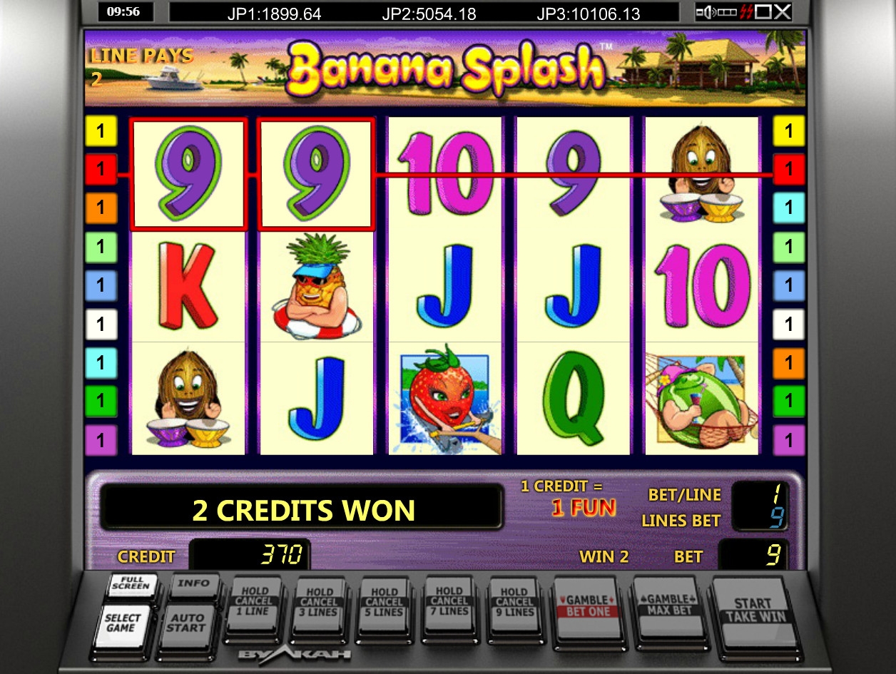 Вы найдете Banana Splash во многих интернет-казино с софтом Novomatic. Например, модель предлагается для бесплатного тестирования и игры «на интерес» в разных «Вулканах». В демо-режиме испытать «Банановый всплеск» можно прямо на Casinoz.
