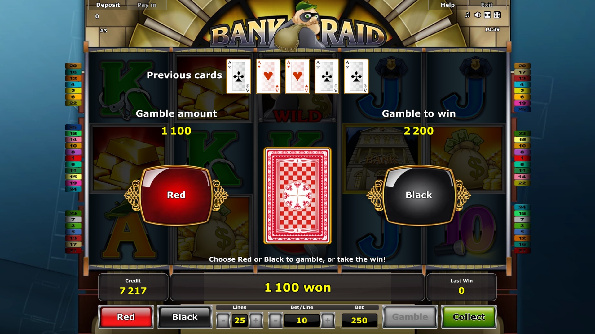 Игра на удвоение запускается по желанию клиента и проходит в стиле «угадай цвет карты». Наверняка вам известны ее элементарные правила. О количестве попыток и других ограничениях читайте в справке.