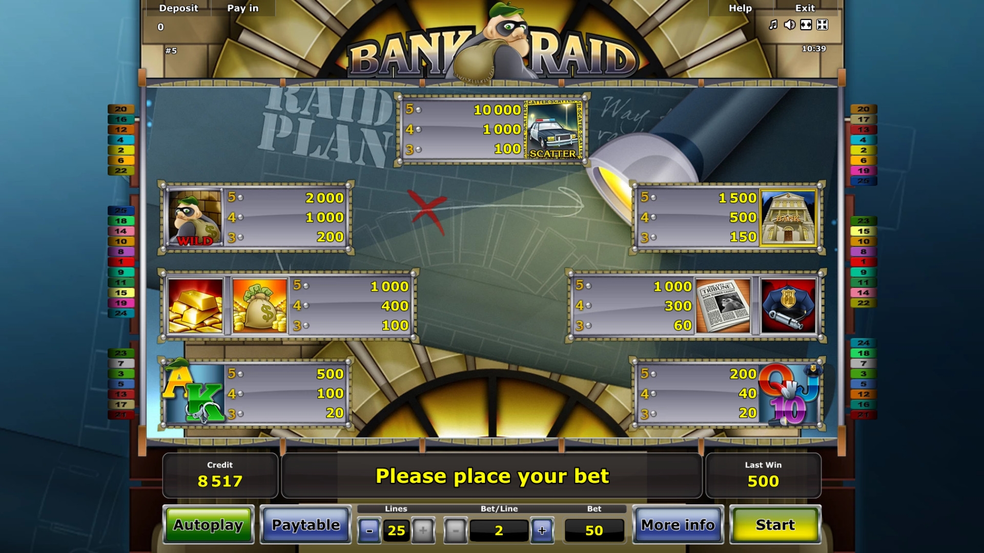 В популярном интернет-казино StarGames можно играть на автомате Bank Raid на деньги или тестировать его бесплатно. Однако доступен он лишь зарегистрированным клиентам. Наверняка вы найдете его в других казино на лицензионном софте «Новоматик».