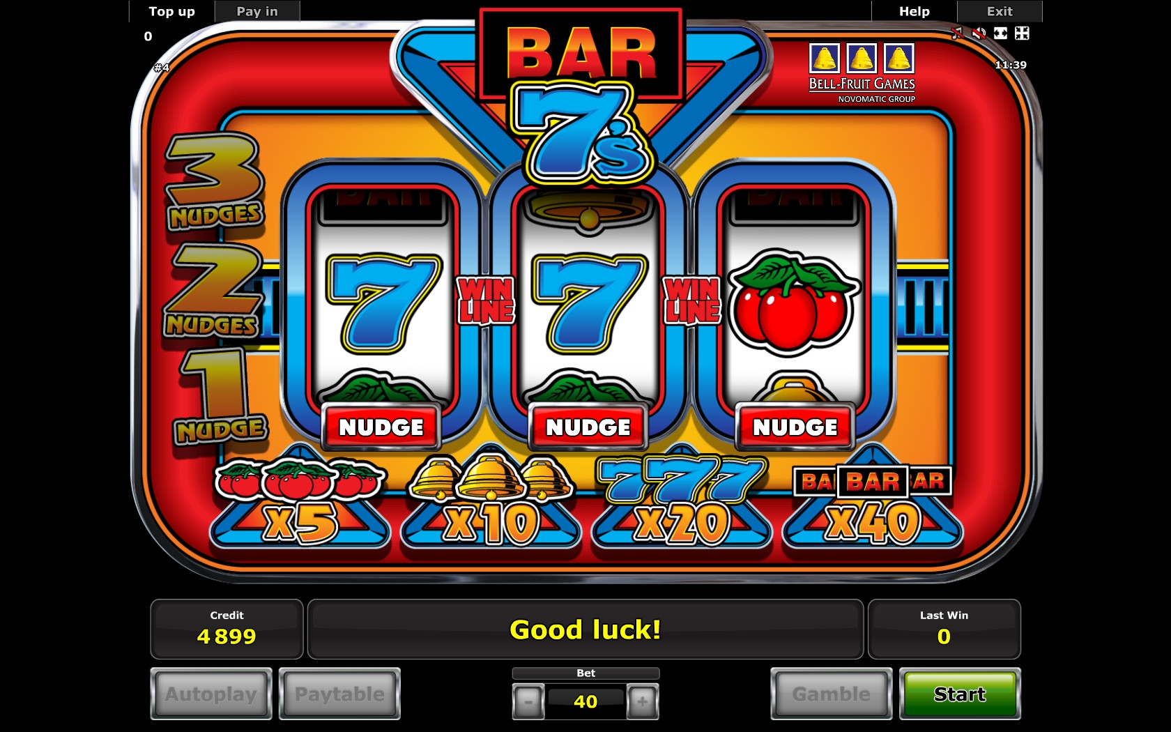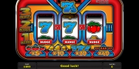 бесплатный игровой автомат, по структуре - 3 барабана и 1 линия. Радуют игроков базовые картинки, игра по шансам и функция Nudge - если спин оказался неудачным. Уровень возврата не известен