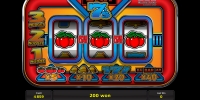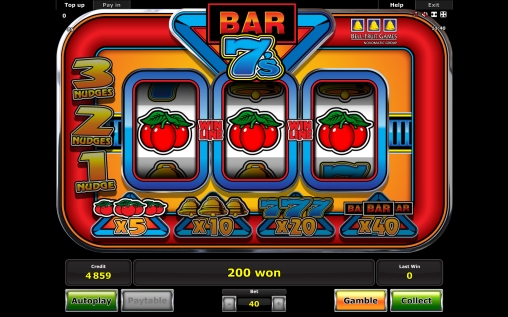 Bar 7’s – бесплатный игровой автомат с тремя барабанами и всего одной активной линией. На нее можно поставить от сорока кредитов до десяти тысяч.