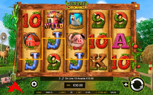 Игровой автомат Barnyard Bonanza имеет пять барабанов и пятнадцать ячеек на экране для картинок. Задействовать можно только двадцать активных линий, на которые принимаются равные ставки в диапазоне, определенном правилами заведения.