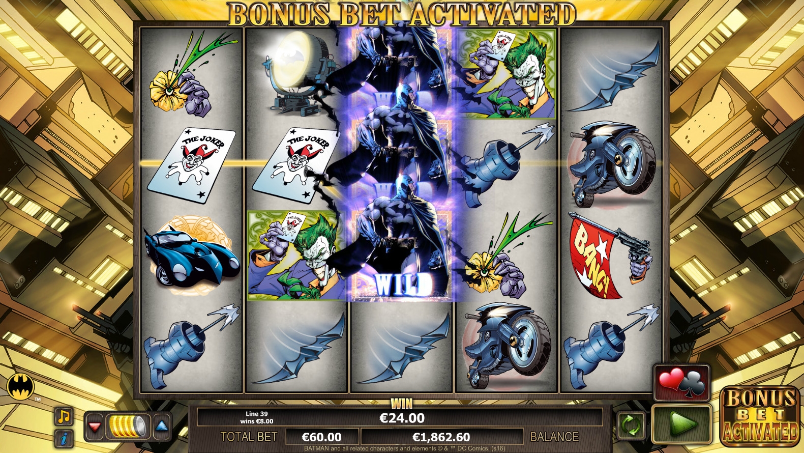 В слоте Batman от NextGen нет прогрессивного джекпота.