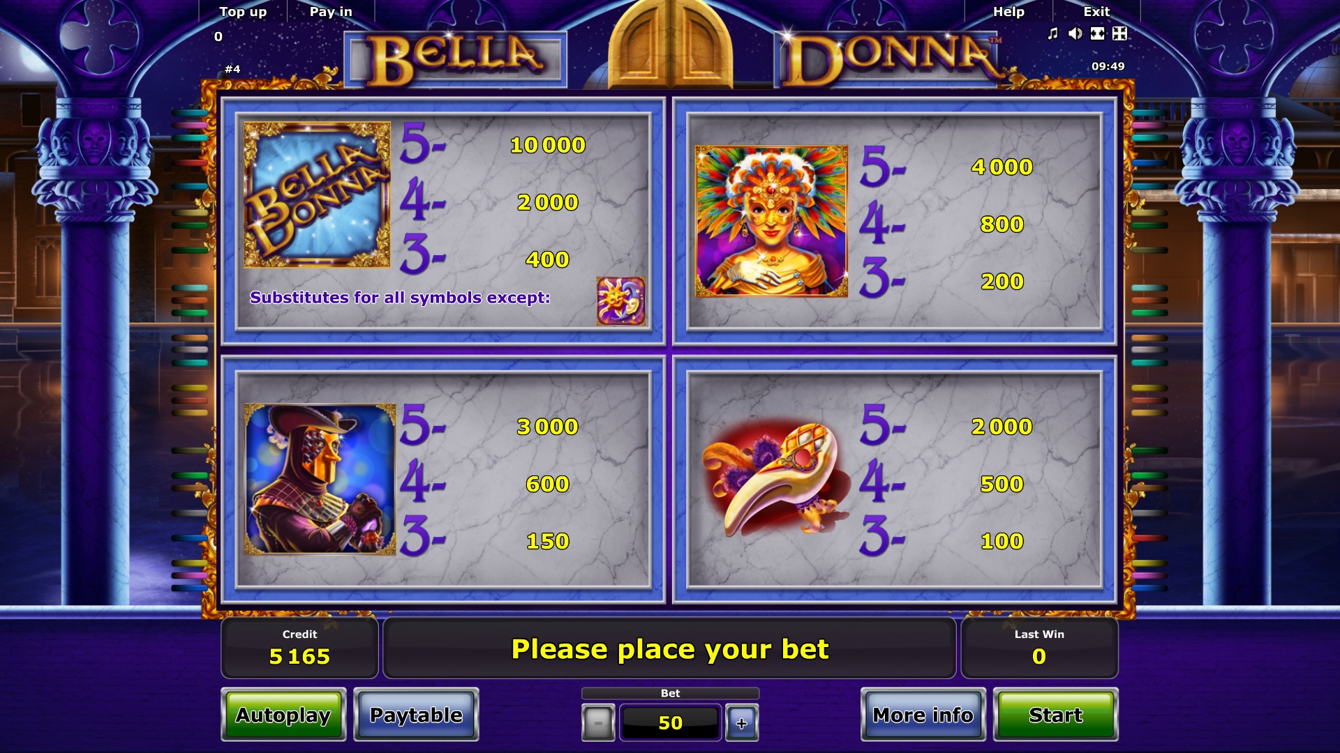 Мы испытывали Bella Donna в StarGames, но игра также предлагается для бесплатного тестирования и реальных ставок в других заведениях на лицензионном софте Novomatic.