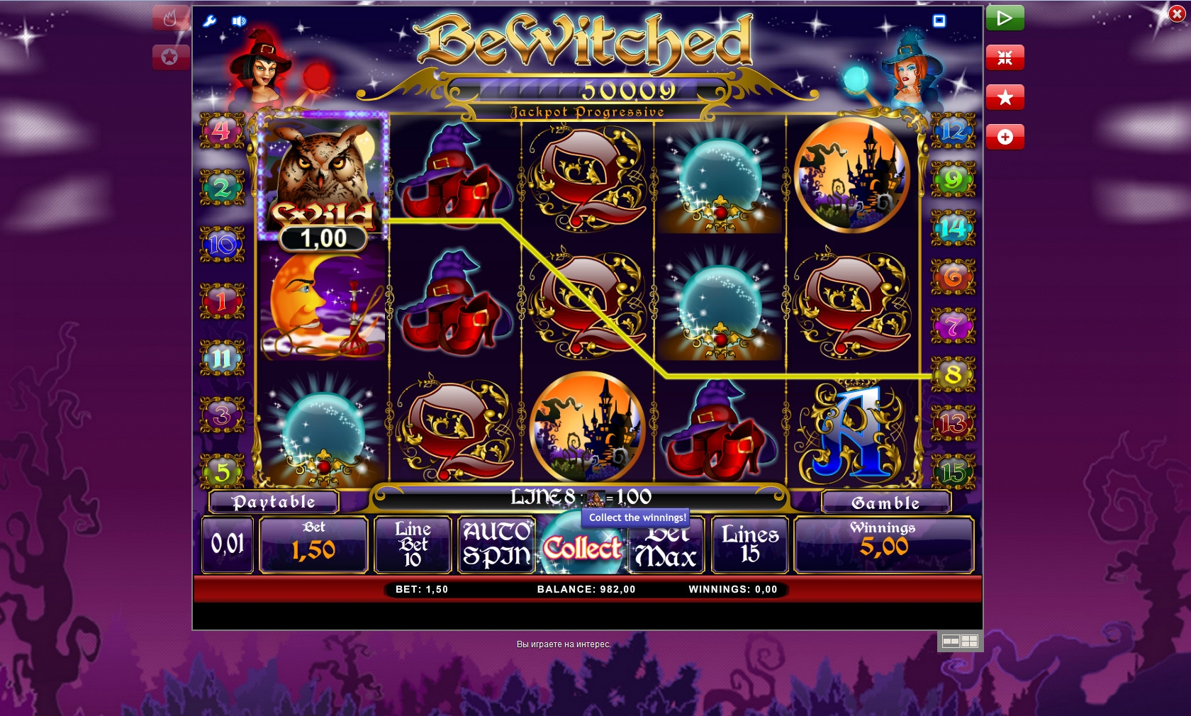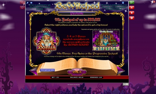 Выиграть прогрессивный джекпот, который представлен в Bewitched, можно в бонусной игре. Для этого вам нужно будет собирать волшебное зелье из снадобий в бутылочках. Подробности объяснялись выше.