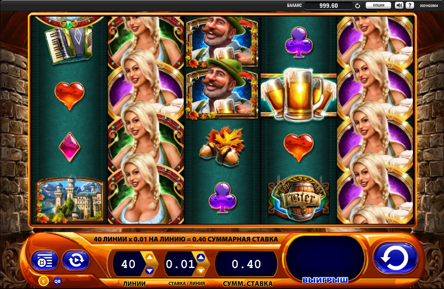 На барабанах слот-машины можно увидеть пивную бочку, аккордеон, красивый город, бокал, желуди, усатого мужчину с кружкой пива, а также словно сделанные из драгоценных камней масти игральных карт.