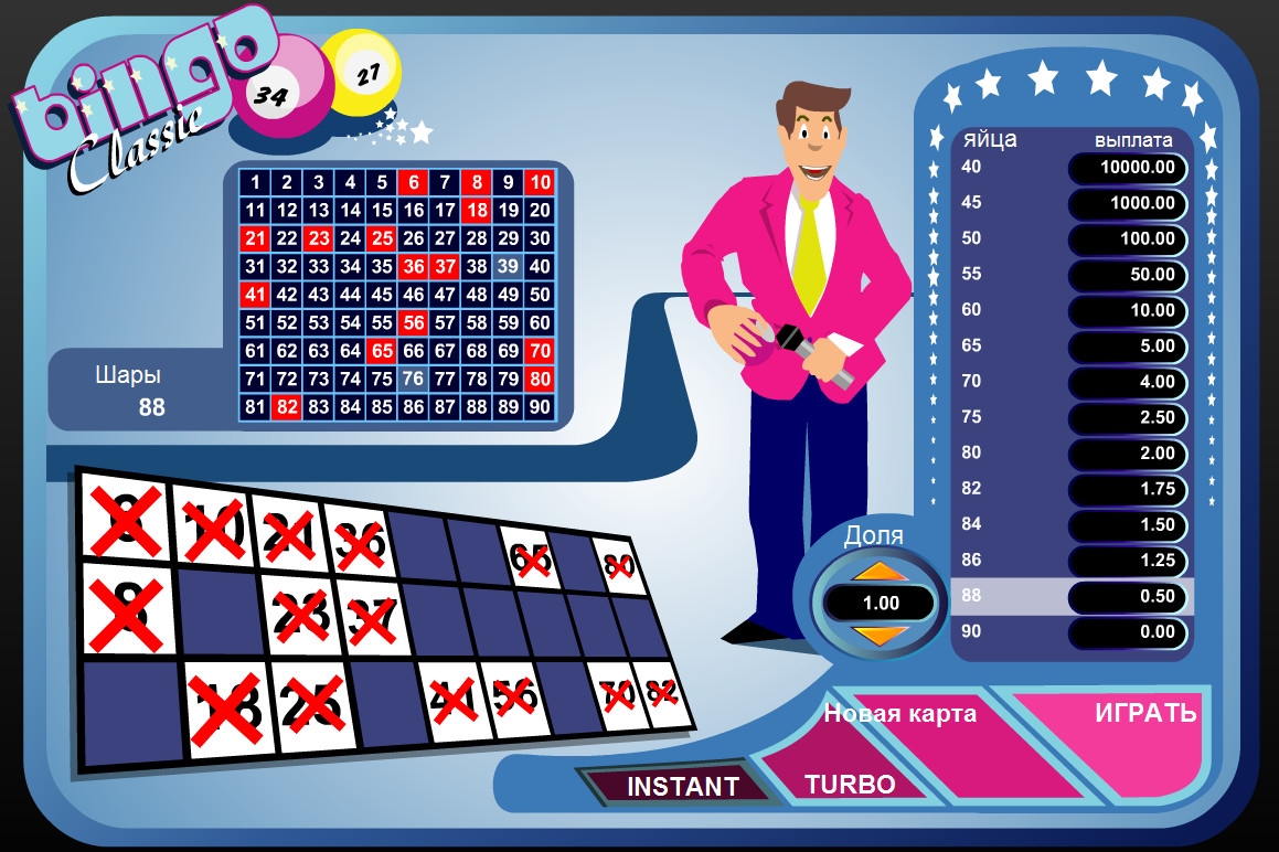 Цель игры в Bingo Classic – вычеркнуть все числа в карточке за как можно меньшее количество шаров, вытянутых из барабана. Чем быстрее удастся это сделать, тем крупнее окажется выплата по карточке.