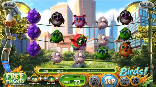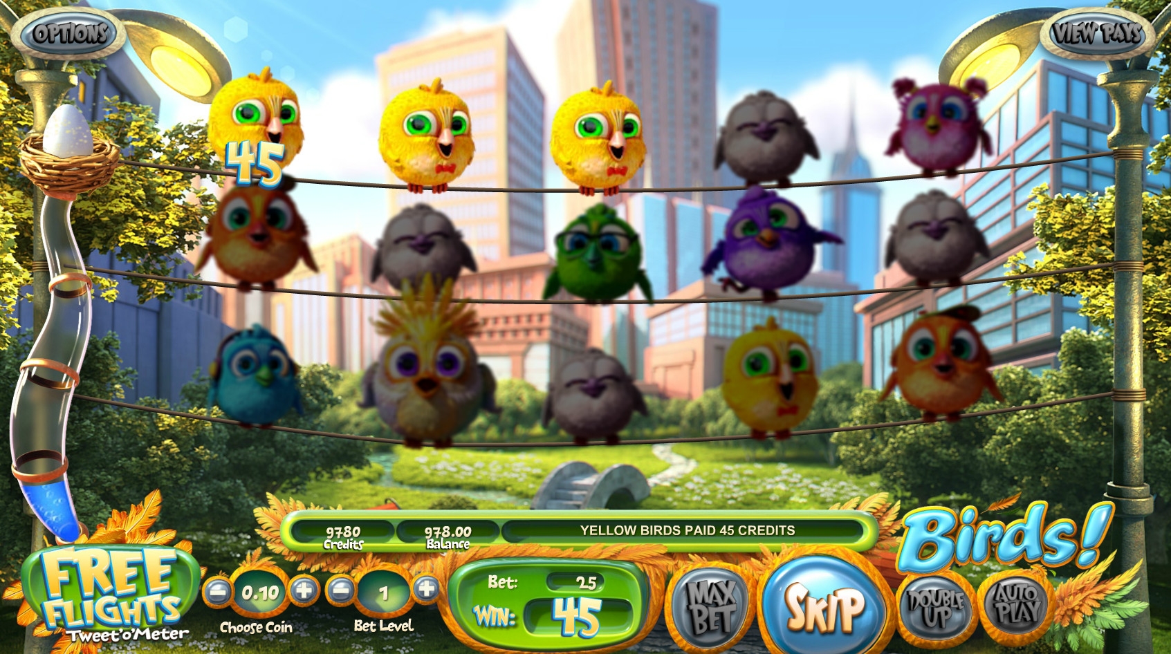 Компания Betsoft порадовала нас очередным шедевральным 3D видео-слотом. Новинка под названием Birds посвящена забавным птичками, которые весело щебечут на городских улицах, рассевшись по проводам между столбами. Разработчики предлагают в игре несколько оригинальных функций геймплея, которые наверняка придутся вам по вкусу. Все особенности игрового процесса и другие характеристики замечательного аппарата детально разбираются в обзоре от Casinoz.