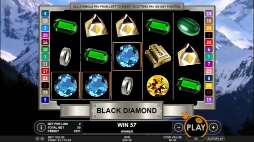 В игровом автомате «Черный бриллиант» пять барабанов с картинками и двадцать пять фиксированных полос для образования комбинаций. На экране есть пятнадцать ячеек для символов.