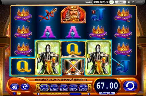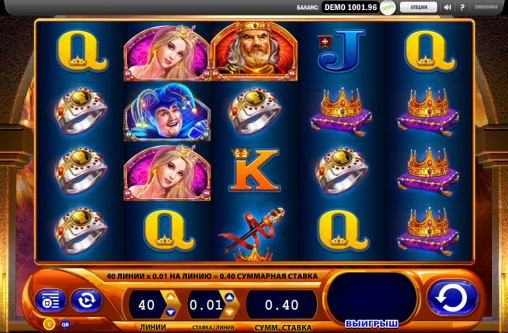 На барабанах видео-слота нарисован рыцарь, принцесса, шут, корона, скипетр, король, перстень, а также буквы, обозначающие номиналы карт. Некоторые картинки могут формировать смешанные комбинации. Отдельные из них идут полосами.