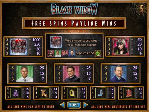 Сложно сказать, что побудило разработчиков из компании High 5 Games вспомнить об этой теме, но под данным брендом вышел бесплатный игровой автомат Black Widow. Его главными персонажами стали красивая женщина и ее бывшие (видимо, уже покойные) мужья.