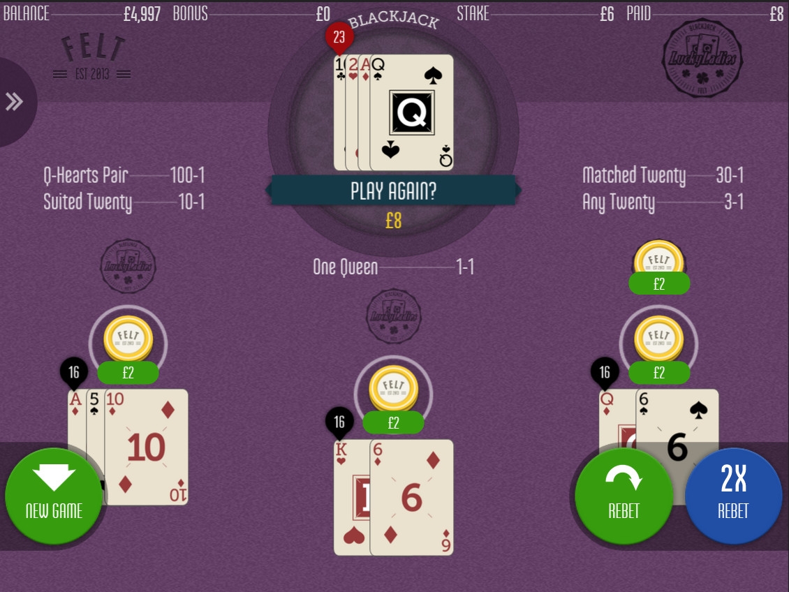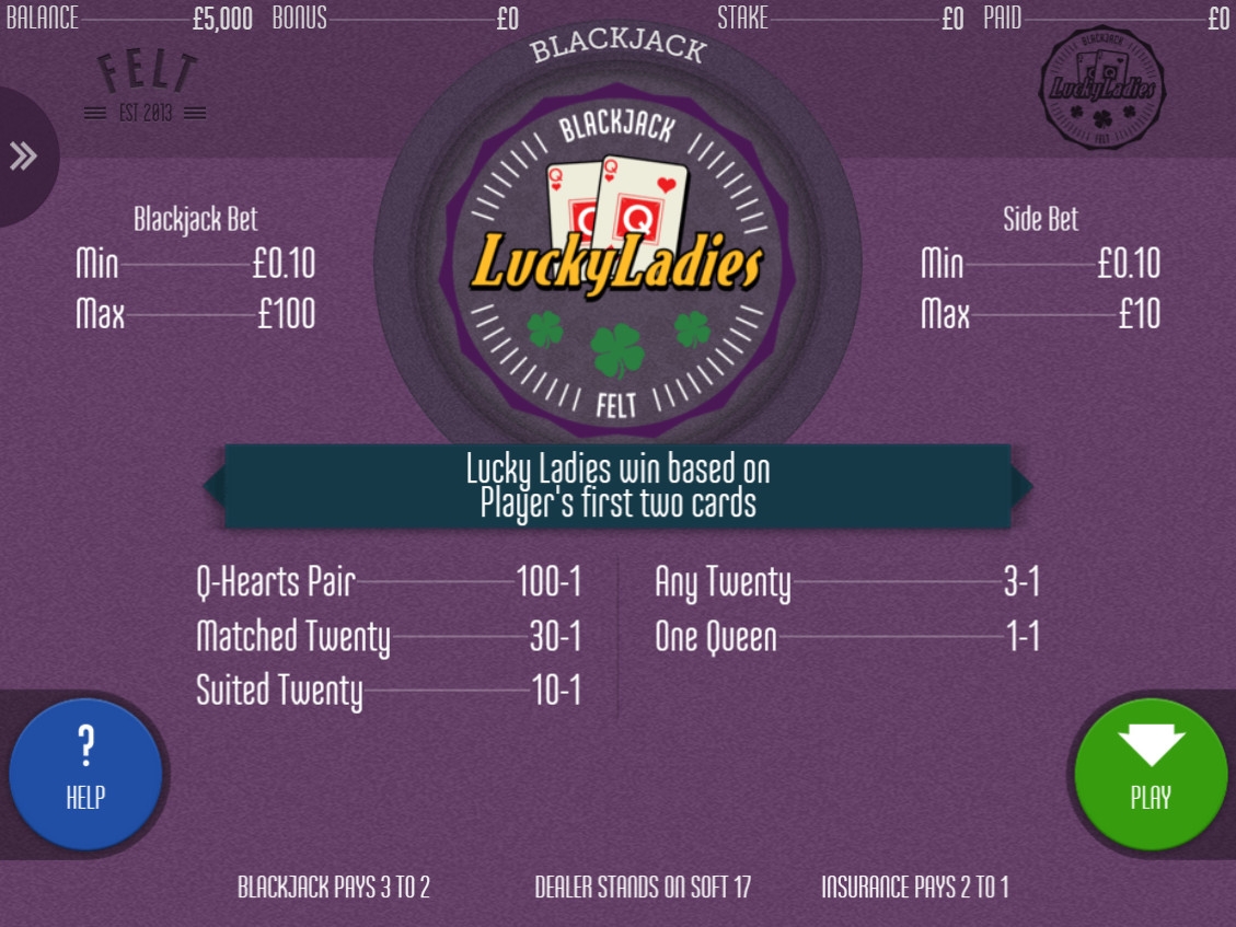 Речь идет об игре Blackjack Lucky Ladies, которую представили специалисты из Felt Gaming. Это версия блэкджека с бонусными выплатами по отдельным комбинациям карт. Если вы не являетесь ревностным поборником традиционных правил в азартных играх, вам наверняка понравится данная новинка.