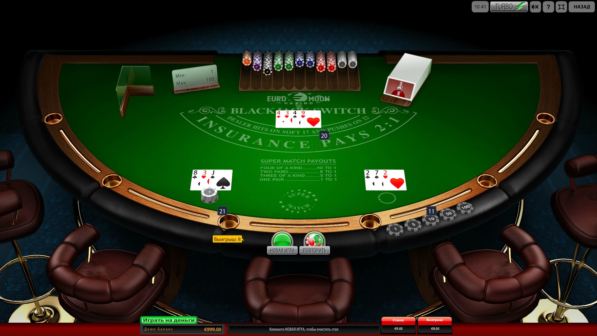 Бесплатно и на деньги играть в блэкджек свитч можно в EuroMoon и других интернет-казино, работающих с программным обеспечением компании GameScale. Их логотипы вы найдете ниже.