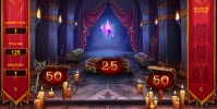 - Hidden Treasure Bonus Game – Вы окажетесь в зале, где стоят гробы вампиров и сундуки. Предметы можно выбирать в любой последовательности. Они скрывают денежные выплаты, скаттеры, ключи и демонов. Если игра началась четырьмя или пятью бонусными символами, призы увеличиваются в два или три раза соответственно. Три собранных скаттера начинают фри-спины. Ключ открывает следующие уровни с более крупными выигрышами. Демон завершает раунд.