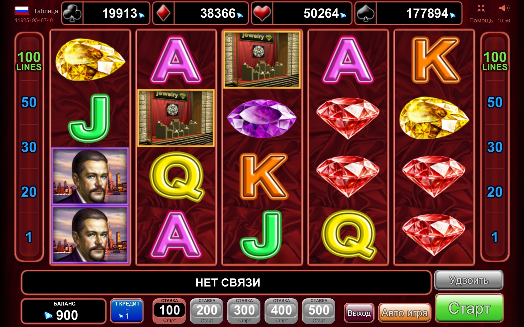 Комбинации формируются на ста активных линиях